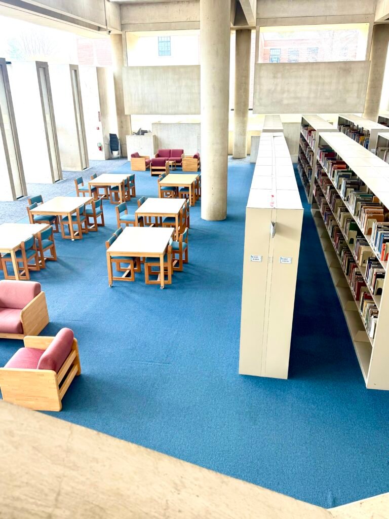 When I walk into the library, I don’t just see shelves and tables; I see the places that have shaped my routine and helped me stay grounded throughout the semester. These corners aren’t random spots I pass by. They’re the places where I sit, think, reset, and get my work done in peace. Each photo I took represents a different part of my day, a different mood, and a different version of myself. Together, they show why the library has become one of my favorite places on campus.